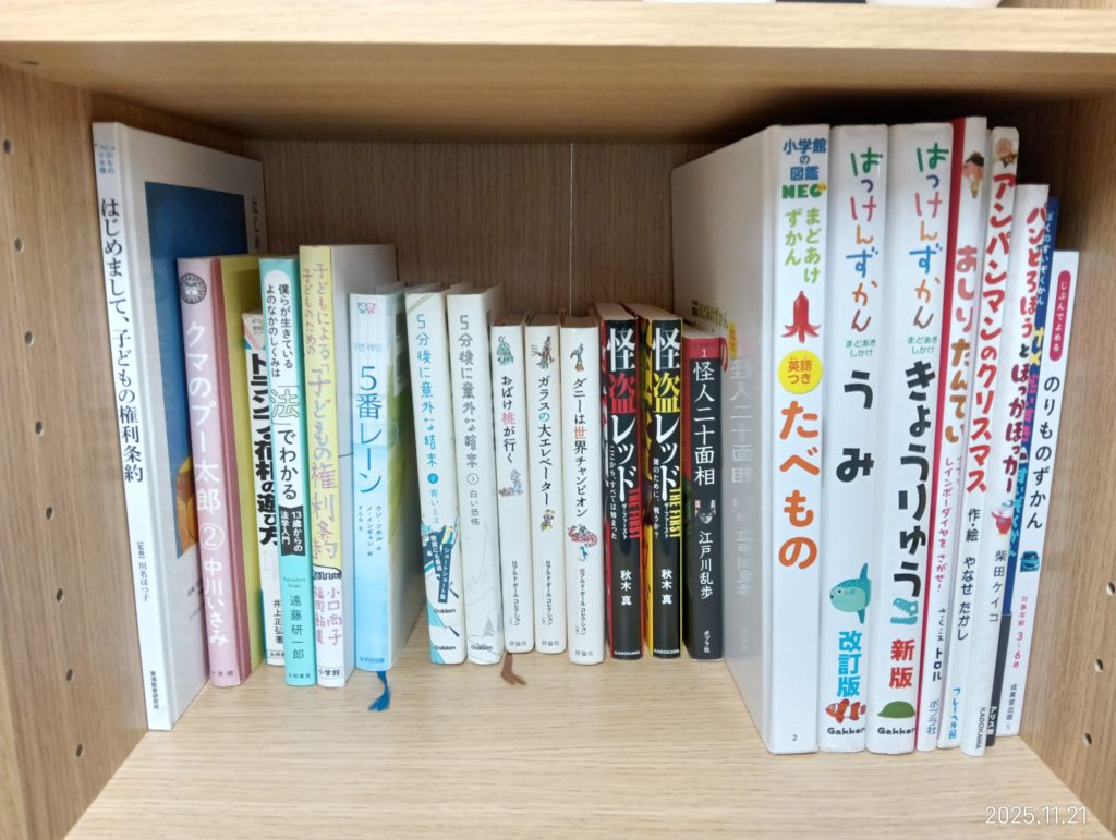 子どもたちの好奇心が満たされそうなたくさんの本をいただきました。